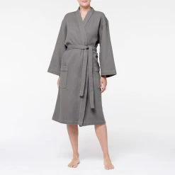 Morgan & Finch Bliss Waffle Robe – Charcoal