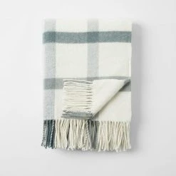 Morgan & Finch Swansea Woollen Checked Throw – Natural Olive