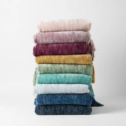 Morgan & Finch Swansea Woollen Herringbone Throw – Natural/Mustard