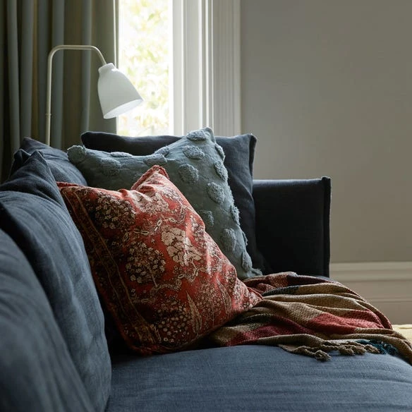 • Morris & Co Strawberry Thief Cushion - Crimson/Slate -Morgan & Finch Shop 21238701 V02 2