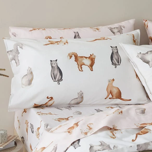Introduce a playful style with the Cheshire Cats flannelette quilt cover. Designed in our Melbourne studio, this quilt cover features hand-painted cats stretching and playing, making it perfect for cat lovers. Finished with a twin needle stitch, this fully reversible design is printed on high-quality cotton flannelette and brushed on both sides for added warmth and softness.