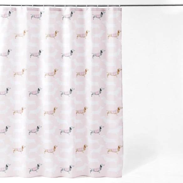 Bring a touch of whimsy to your bathroom with the adorable Dachsie shower curtain. This playful pink design will brighten up any bathroom. Hang your shower curtain with ease with the Shower Curtain Ring Set of 12.