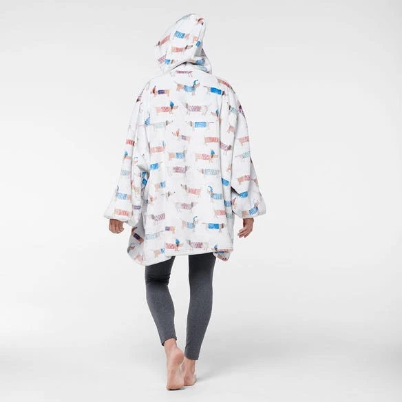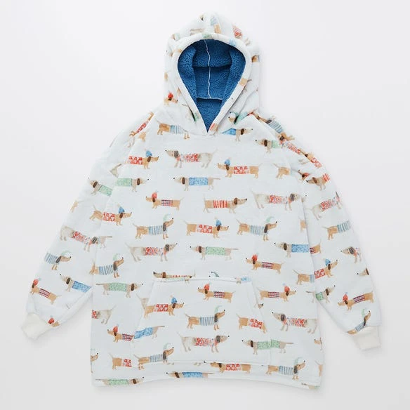 Stay warm this winter with the cosy Hooded Dash sherpa. Made with a snuggly sherpa reverse, the Hooded sherpa is oversized just like a wearable blanket and features a playful dachshund design in ultra soft fabric. Perfect for chilly nights at home or a great gift for someone special.
