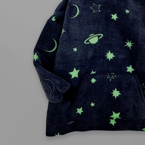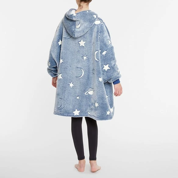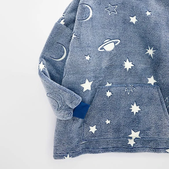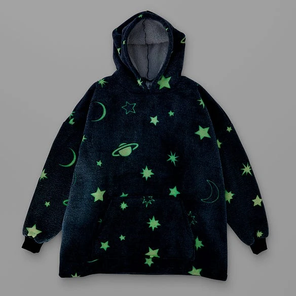 Stay warm this winter with the cosy Galaxy Hooded Sherpa. Made with a snuggly sherpa reverse, this hooded sherpa is oversized just like a wearable blanket and features glow in the stars, planets, and moons. Perfect for chilly nights at home or a great gift for someone special.