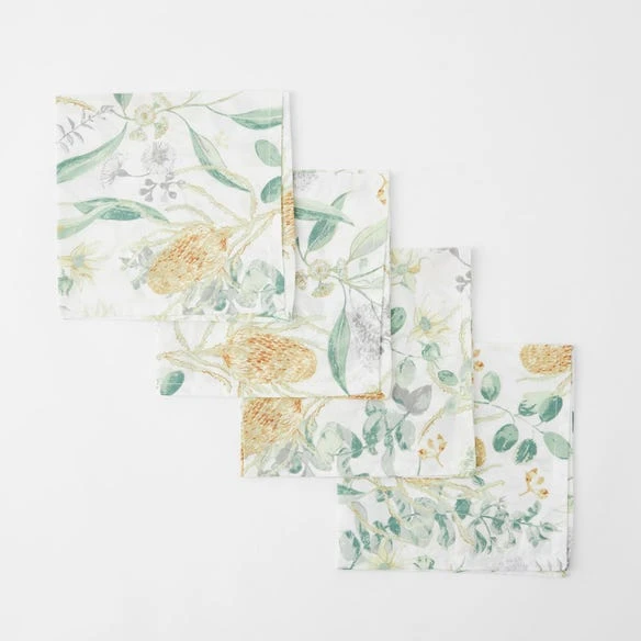 Bring a botanical style to your table with the Goulburn napery range. Featuring native Australian flowers and foliage, this range will add a beautiful natural style to your dining table. Tablecloth, napkins, placemats and runners each sold separately.