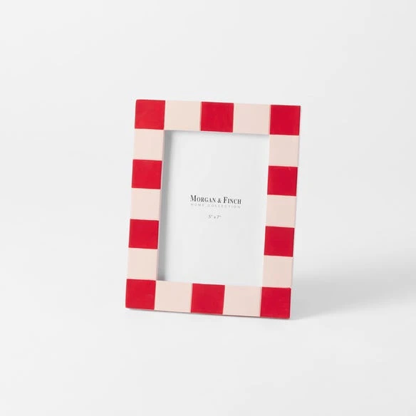 Display your special memories with our beautiful range of frames. Perfect for the mantel piece, coffee table, or hallway entrance, our Grant Check 5×7 Resin Frame in Red and Pink features a bold check design for a fun contemporary style. The perfect sentimental addition to your home, or a beautiful gift for someone special.