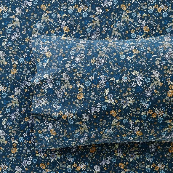 Create a whimsical style in your bedroom with the Greta sheet set. Made from 250 thread count cotton, intricate florals are designed against a deep blue ground and finished with a twin needle stitch. Coordinate with printed or solid quilt covers for a stylish addition to your home.