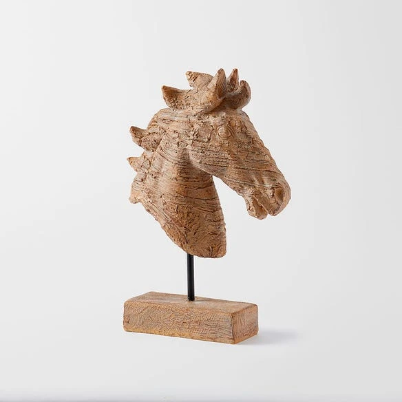 Add character and style to your home with this Horse Sculpture on a Stand. As if carved from wood, this rustic decorative piece creates a bold statement in any space.