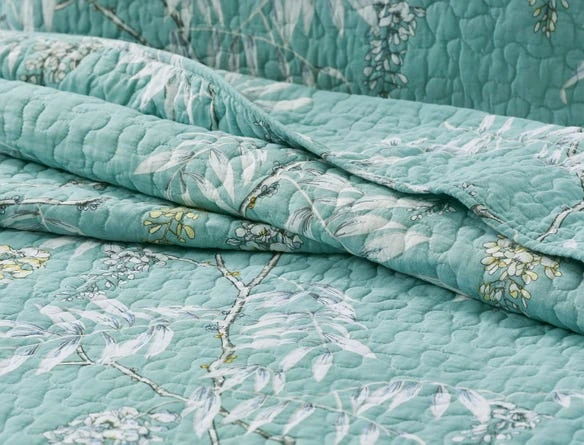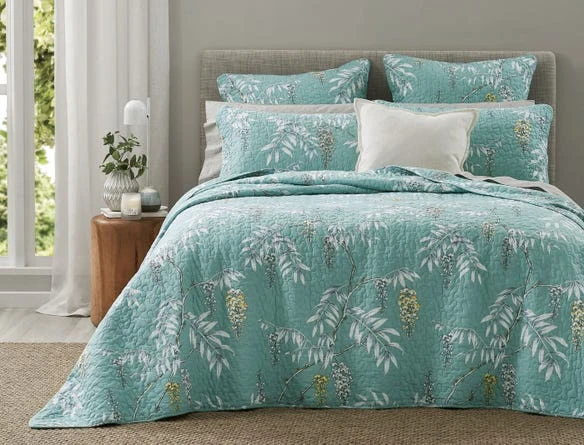 Create a relaxing, calming bedroom with the Japanese Flower bedspread. Crafted from pure cotton, the Japanese-inspired bedspread features a soft wisteria pattern and is quilted for extra comfort. Use the bedspread as a lightweight layer in summer or pair with a quilt in winter to transition easily between seasons.