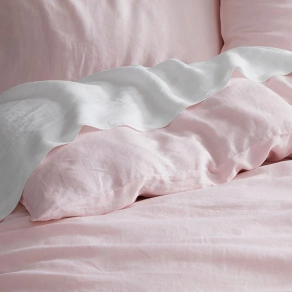 The blush Milano Linen quilt cover combines the natural benefits of linen with a soft and
