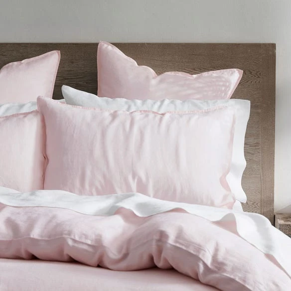 The blush Milano Linen quilt cover is expertly woven using the finest French flax.