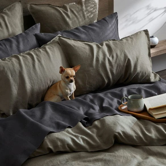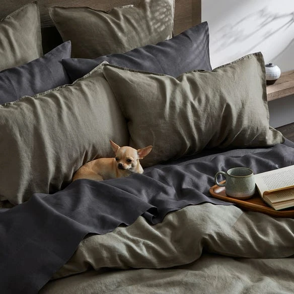 Relaxed and effortless, the khaki Milano Linen quilt cover will add a contemporary style to your bedroom. With a range of colours available, it is easy to mix or match with the Milano sheet set to create your own unique style.