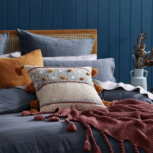 Bring a classic style to your bedroom with the Ramsay quilt cover. Crafted from pure cotton, this quilt cover combines a unique crinkle texture with a subtle stripe detail and a vintage wash finish. Finished with a knife edge, coordinate with European pillowcases to complete the look.