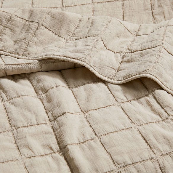Create a contemporary bedroom style with the Reid coverlet in Oatmeal. Made with a stonewashed finish, this coverlet is incredibly soft to touch and features a stylish quilted check pattern for added texture.