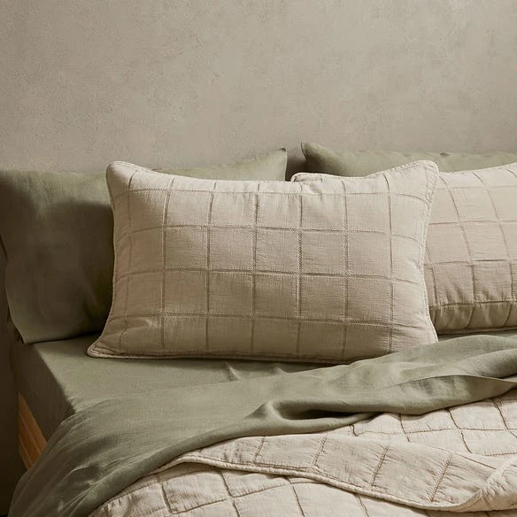 Morgan & Finch Reid Coverlet - Oatmeal -Morgan & Finch Shop M F Reid Oatmeal Coverlet Pillow