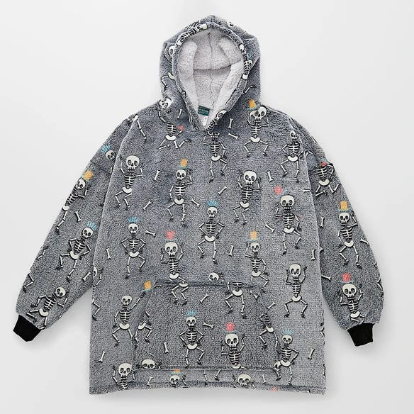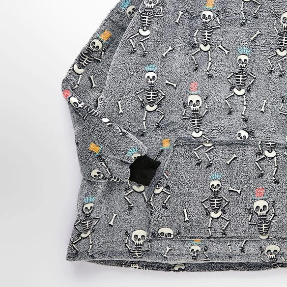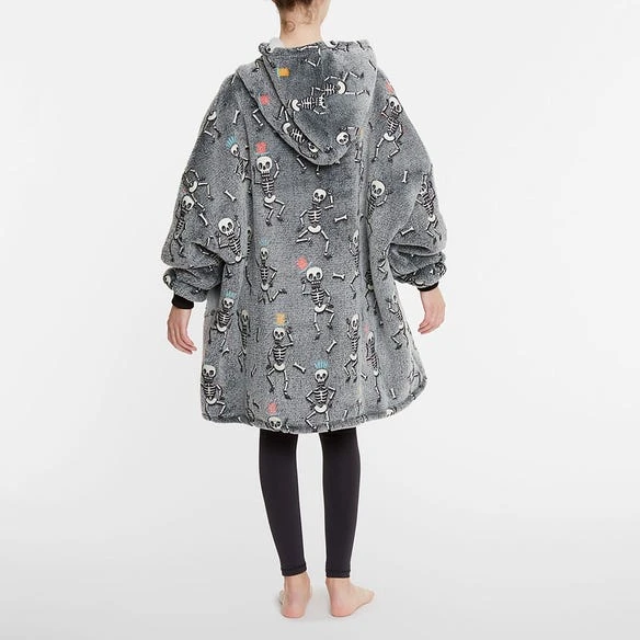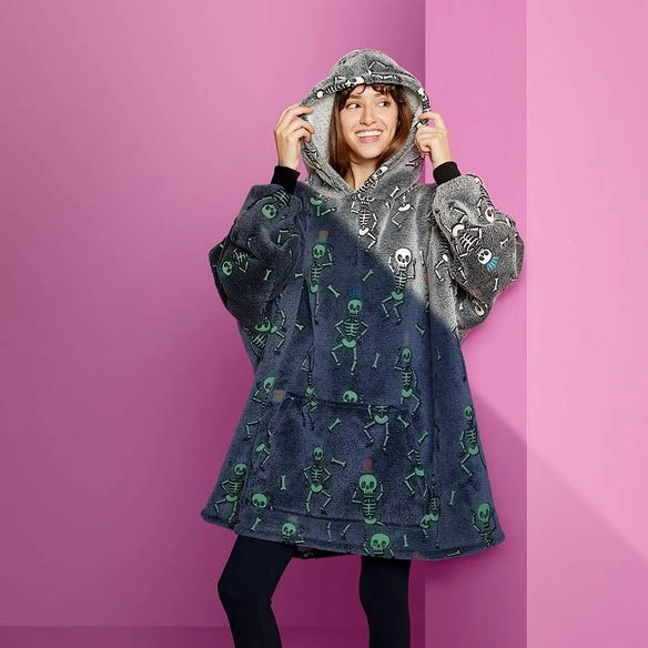 Stay warm this winter with the cosy Skeleton Hooded Sherpa. Made with a snuggly sherpa reverse, this hooded sherpa is oversized just like a wearable blanket and features glow in the dark skeletons. Perfect for chilly nights at home or a great gift for someone special.
