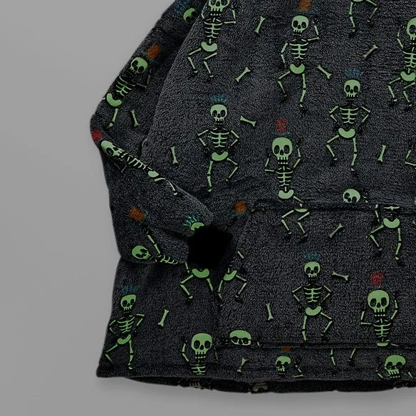 Morgan & Finch Skeleton Glow Hooded Sherpa Blanket