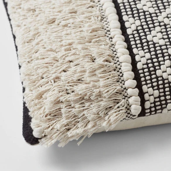 Morgan & Finch Zanzibar Panel Cushion -Morgan & Finch Shop M F Zanzibar Centre Panel Cushion Black Natural 50x50cm 20005301 Detail 1